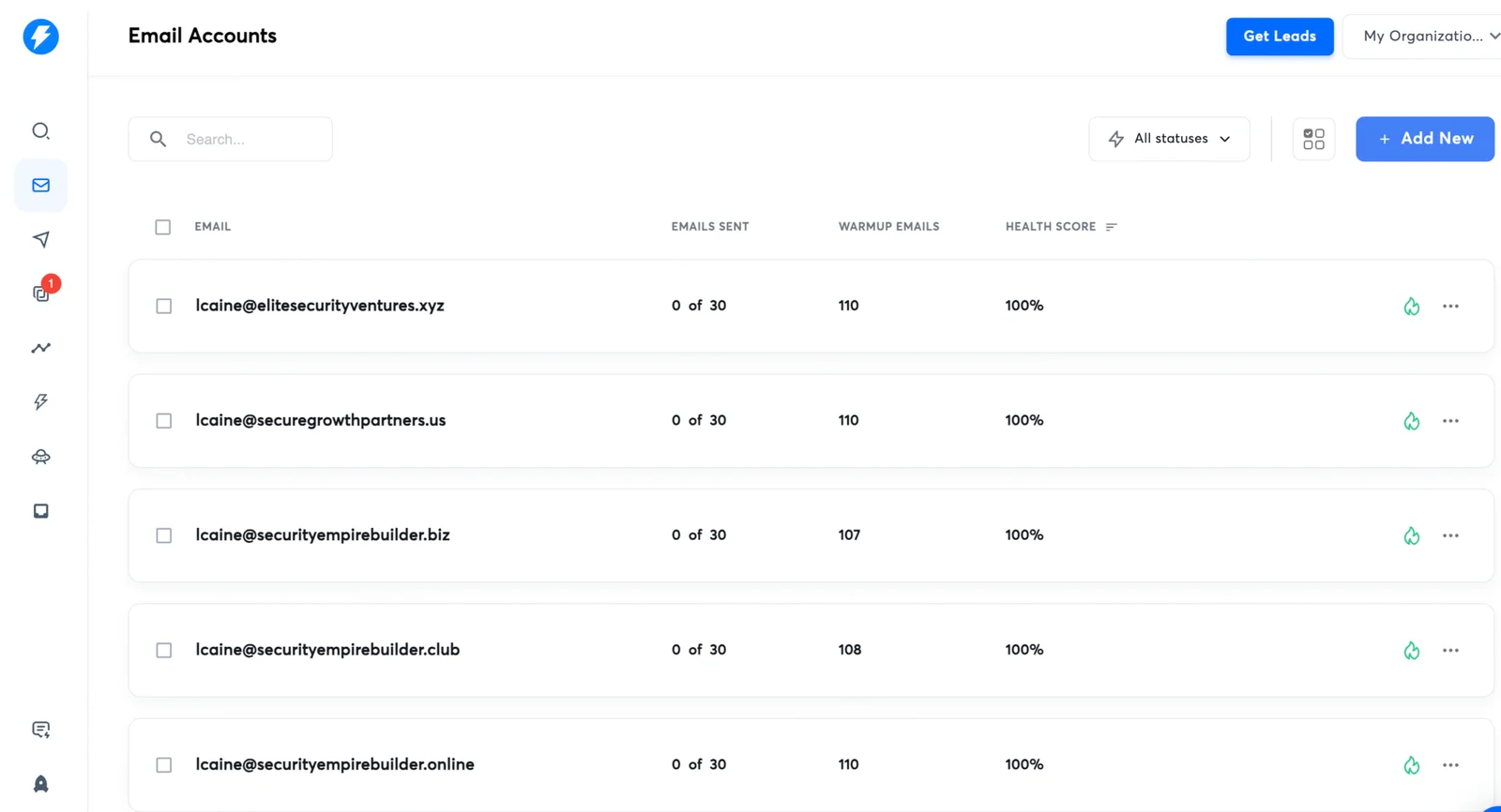 We provide fully set up inboxes to ensure industry-leading deliverability and reliability. After extensive testing with .edu Workspace accounts, nonprofit accounts, and other providers, we’ve found that Google Workspace Business accounts consistently deliver the best performance.